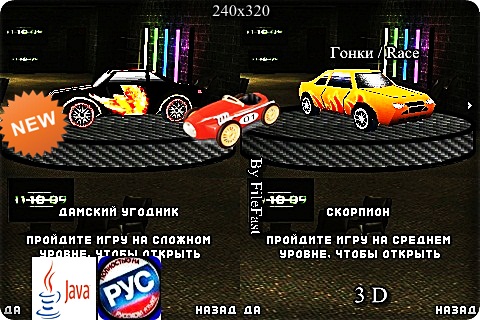 Тебе предстоит проехать по 3-ем локациям (Инферно, Деревня, Майями), используя один из 5-ти авто, которые ты будешь открывать по мере прохождения java-игры. Год выпуска/Year of issue: 2012 Жанр/Genre: Гонки / Race Категория/Category: Java игры/Java games Размер экрана/Screen size: 240х320 Разработчик/Developer: Мод на java-игру R.U.S.H. Платформа/Platform: Java Формат файла/File format: .jar Вид устройства/Appearance of the device: для телефонов/for phones Язык интерфейса/Interface language: русский (RU) английский (ENG) Размер/Size: 3,19 Mb Поддержка/Support 3D: есть/there are Статус игры/The status of the game: бесплатная/free Подготовил/Prepared by: FileFast