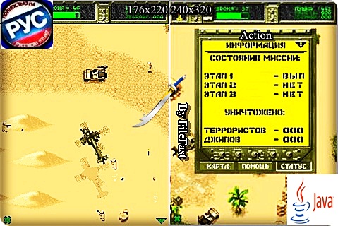 1982-й год. 3 года идет война в Афганистане. Войска СССР с теснят позиции моджахедов. Русскому агенту удалось узнать, что у лидера крупной афганской группировки есть ядерное оружие, и он планирует применить его. Было принято решение - отправить новейший вертолет с самым лучшим спецназовцем. Год выпуска/Year of issue: 2012 Жанр/Genre: Action Категория/Category: Java игры/Java games Размер экрана/Screen size: 176x220 240x320 Разработчик/Developer: JoyBits Платформа/Platform: Java Формат файла/File format: .jar Вид устройства/Appearance of the device: для телефонов/for phones Язык интерфейса/Interface language: русский (RU) Размер/Size: 1,35 Mb Статус игры/The status of the game: бесплатная/free Подготовил/Prepared by: FileFast